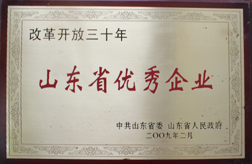 山東省改革開(kāi)放三十年優(yōu)秀企業(yè)